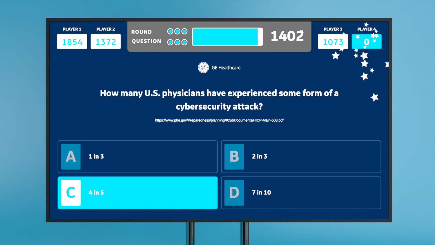 Each player score is based on the number of correct answers and how fast they answered